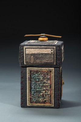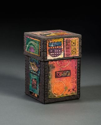 All boxes are artist designed and made papers, wax-resist and hand stitched.